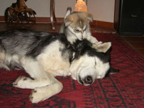 Als die Frage zu uns kam, wurde uns rasch bewusst, dass wir die letzten in der Reihe waren und indirekt über das Weiterleben dieses wunderschönen Tieres entscheiden würden. Gott sei Dank hatten wir noch genügend Platz um Alaska bei uns aufzunehmen. Wir dachten uns auch, dass er ein Freund für unseren nur um ein Jahr jüngeren Timber werden könnte, der allerdings noch nicht pensioniert war. Ausserdem hatten wir den Eindruck, dass Alaska wohl nicht mehr sehr lange leben würde und hofften, dass er doch wenigsten noch einen Winter lang seinen Lebensabend geniessen könnte.